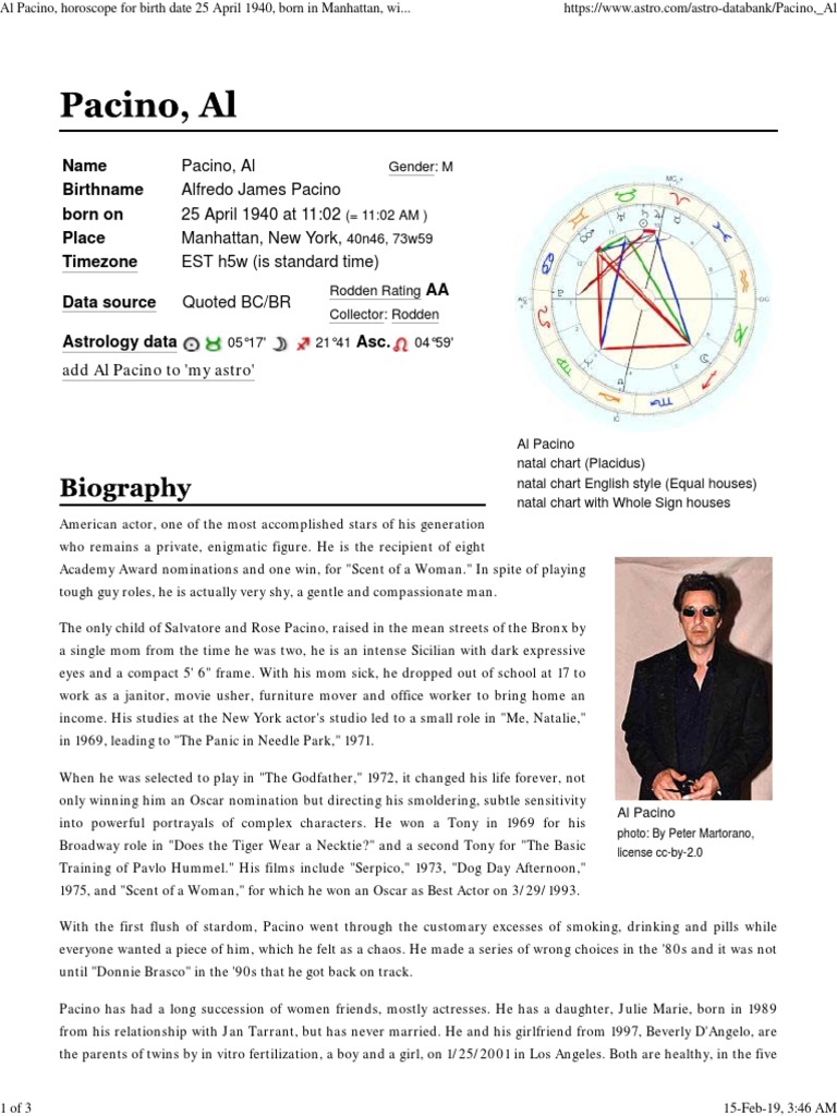 Astrology And Natal Chart Of Al Pacino Born On 1940 04 25