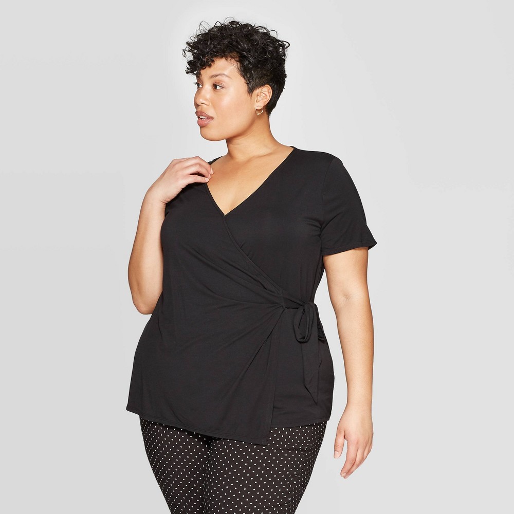 Womens Plus Size Short Sleeve V Neck Knit Wrap Top Ava Viv Black 2x
