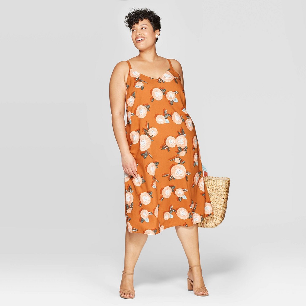 Womens Plus Size Floral Print Sleeveless V Neck Shift Dress Ava Viv Rust 2x Red