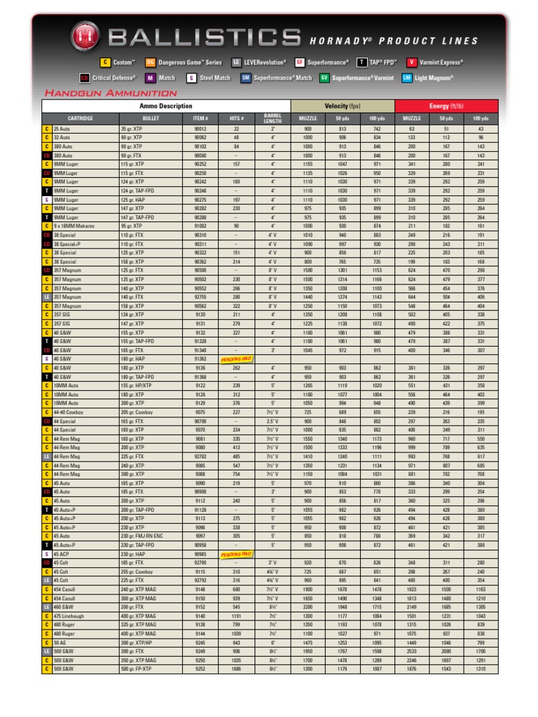 English Ballistics Chart 2010 Cartouches Pour Pistolets Et
