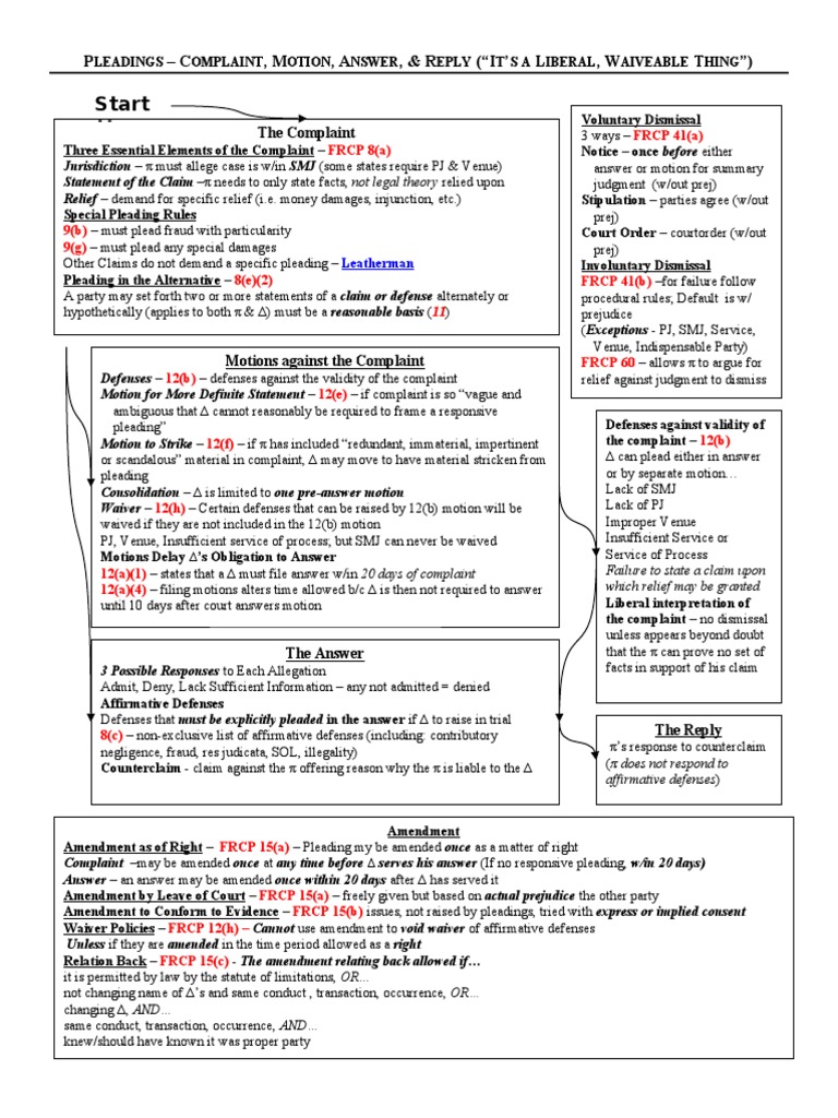 Civ Pro Pleading Flowchart Pleading Demurrer
