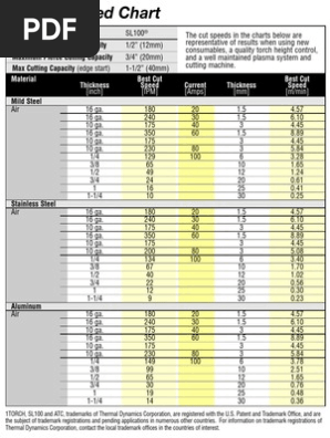 Cut charts the following cut charts show the consumable parts cutting speeds and the gas and torch settings required for each process. Increase the cutting speed feed rate until the quality of the part s finish starts to decrease or the part is starting to move from hold downs. The endmill is being pushed too fast into the cut and the chips get too big.