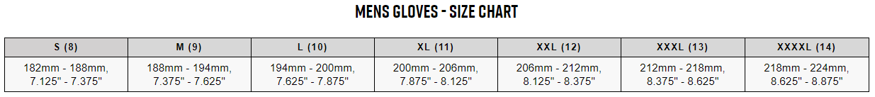 Five5 Gloves Sizing Chart Motorcycle Stuff