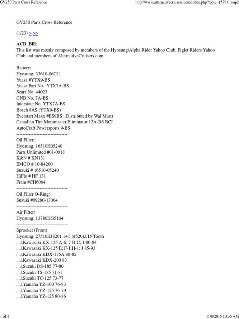 Gv250 Parts Cross Reference Wheeled Vehicles Vehicles