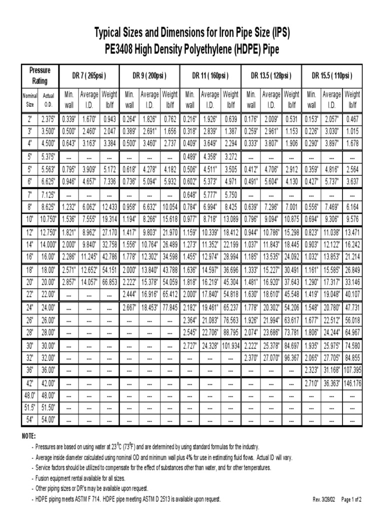 Hdpe Pipe Size Chart