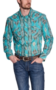 Rock Roll Cowboy Men S Turquoise With Orange Brown Aztec Print