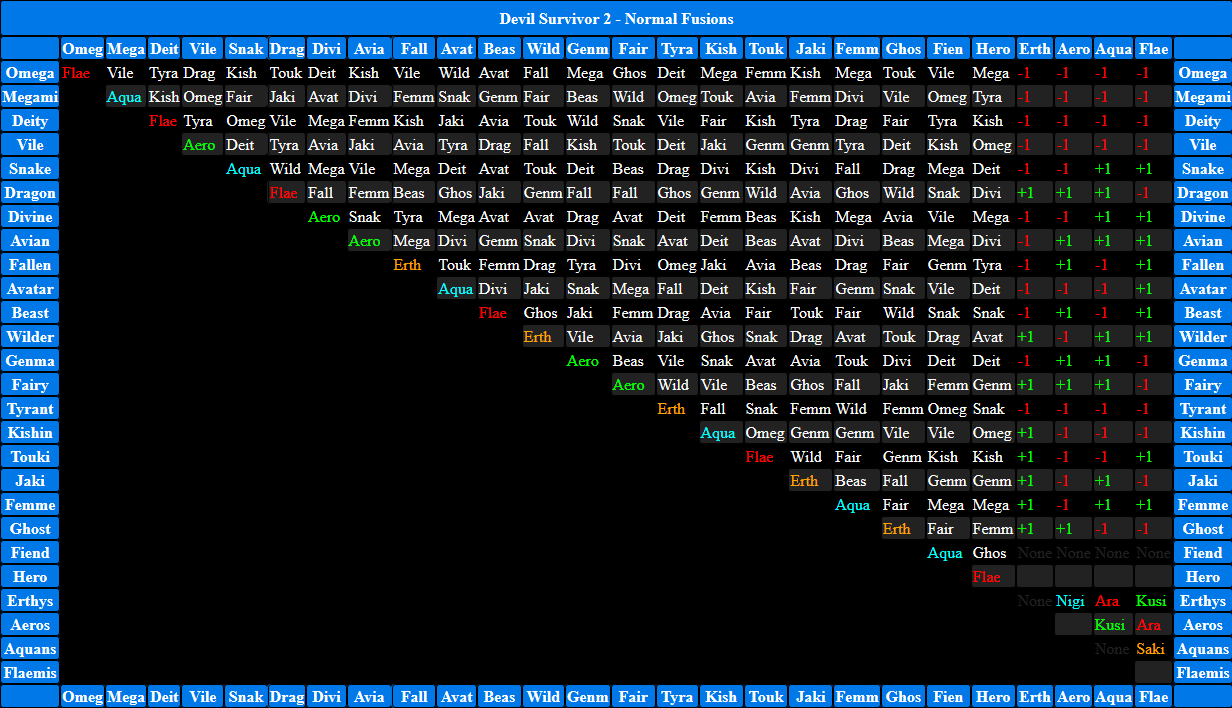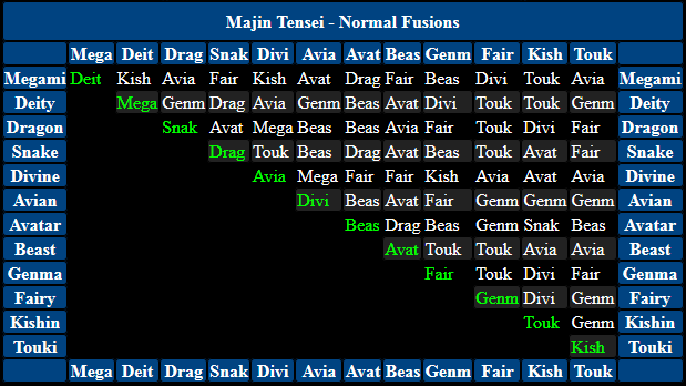 Shin Megami Tensei Strange Journey Redux Basic Fusion Chart Map