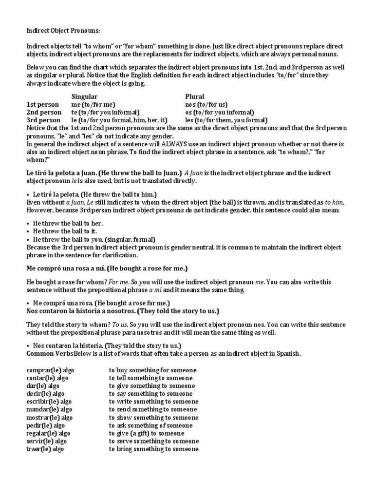 Home Indirect Object Pronouns Spanish Spanish Object Pronouns