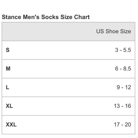 Stance Socks Size Chart