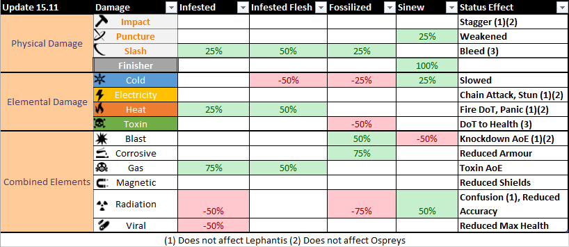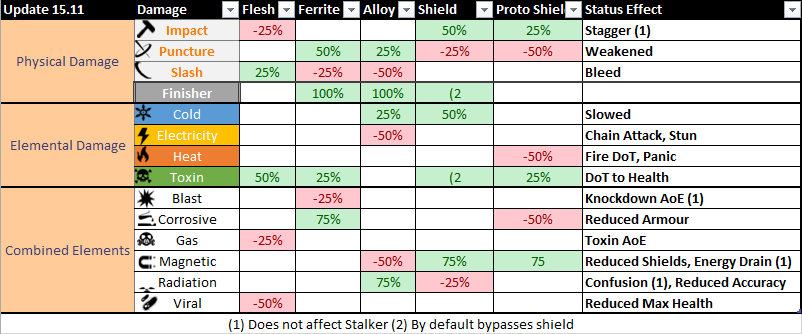 Warframe Elemental Damage Chart