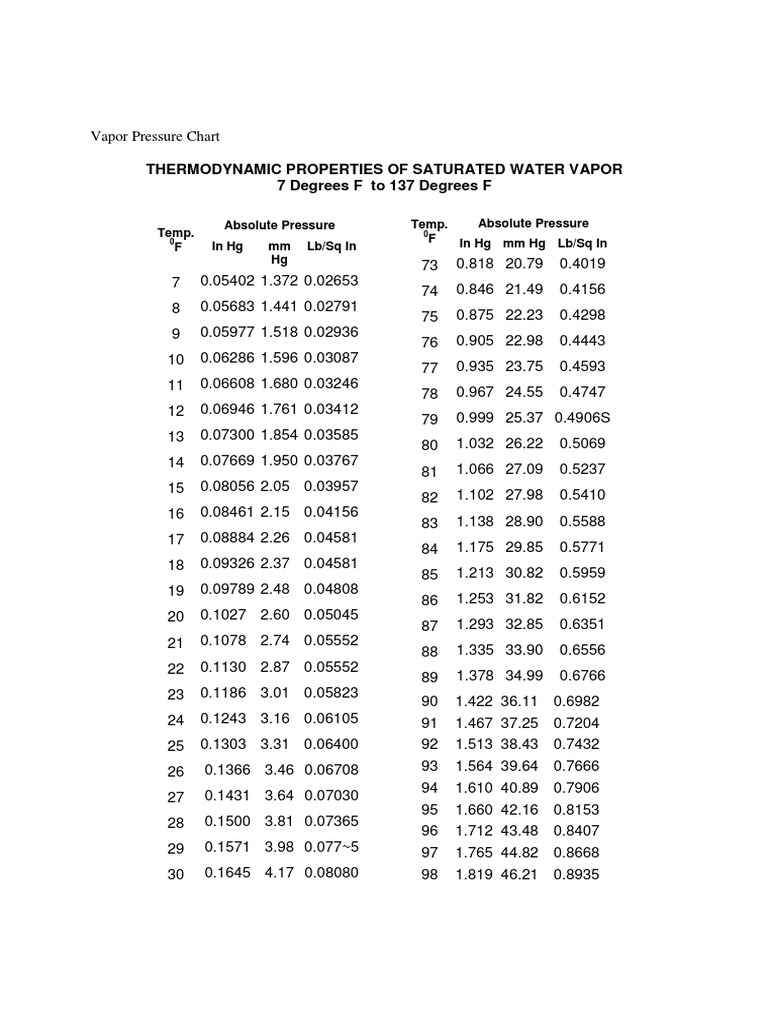 Thermodynamic Properties Of Saturated Water Vapor 7 Degrees F