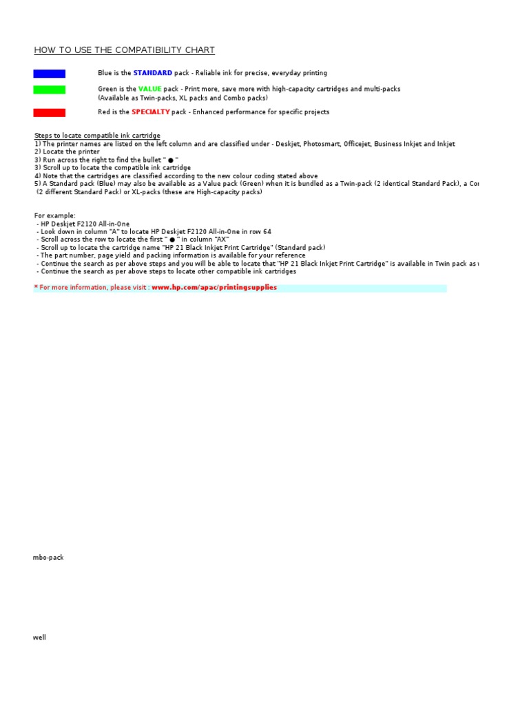 What Hp Ink Cartridge Is Compatibility Chart